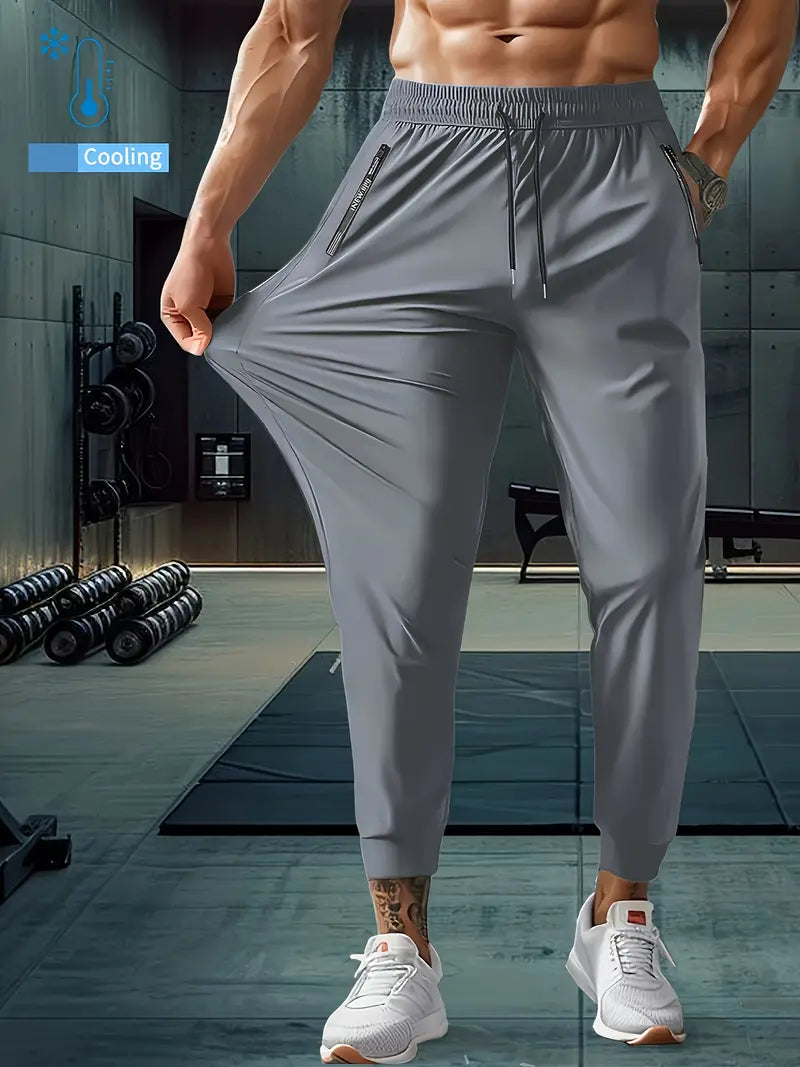 Men'S High-Elasticity 9/10 Leggings - Black, Casual Running & Fitness Pants with Pockets, Comfortable Cropped Design for Outdoor Activities, Workout Leggings, Smooth Texture Fabric
